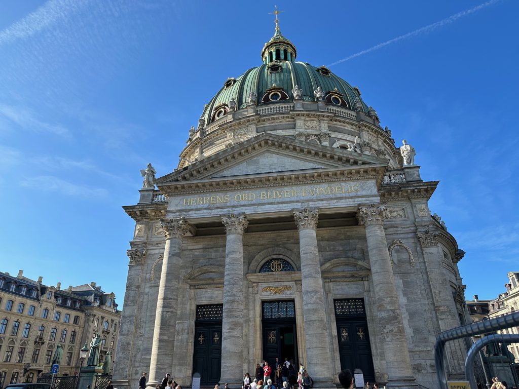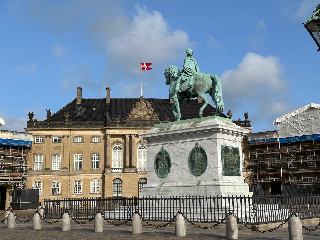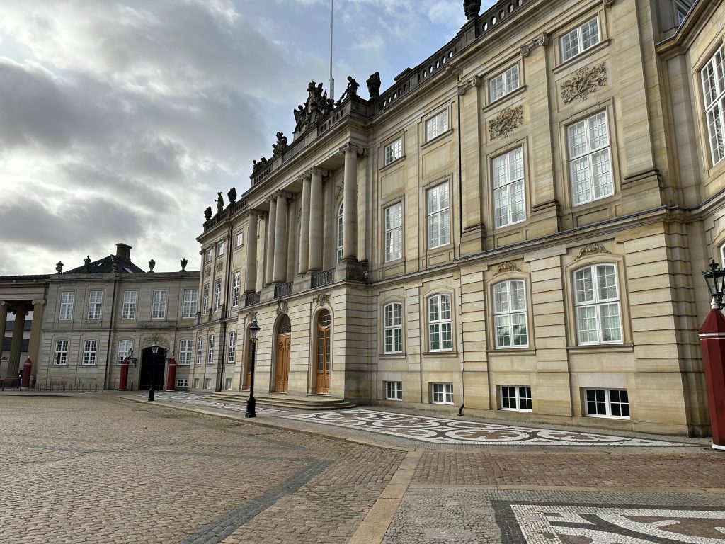 Amalienborg is the Queen’s winter residence. The Amalienborg complex consists of four palaces, built around an octagonal courtyard, in the centre of which stands the French sculptor J.F.J. Saly’s equestrian statue of Frederik V, the founder of Amalienborg and Frederiksstaden.