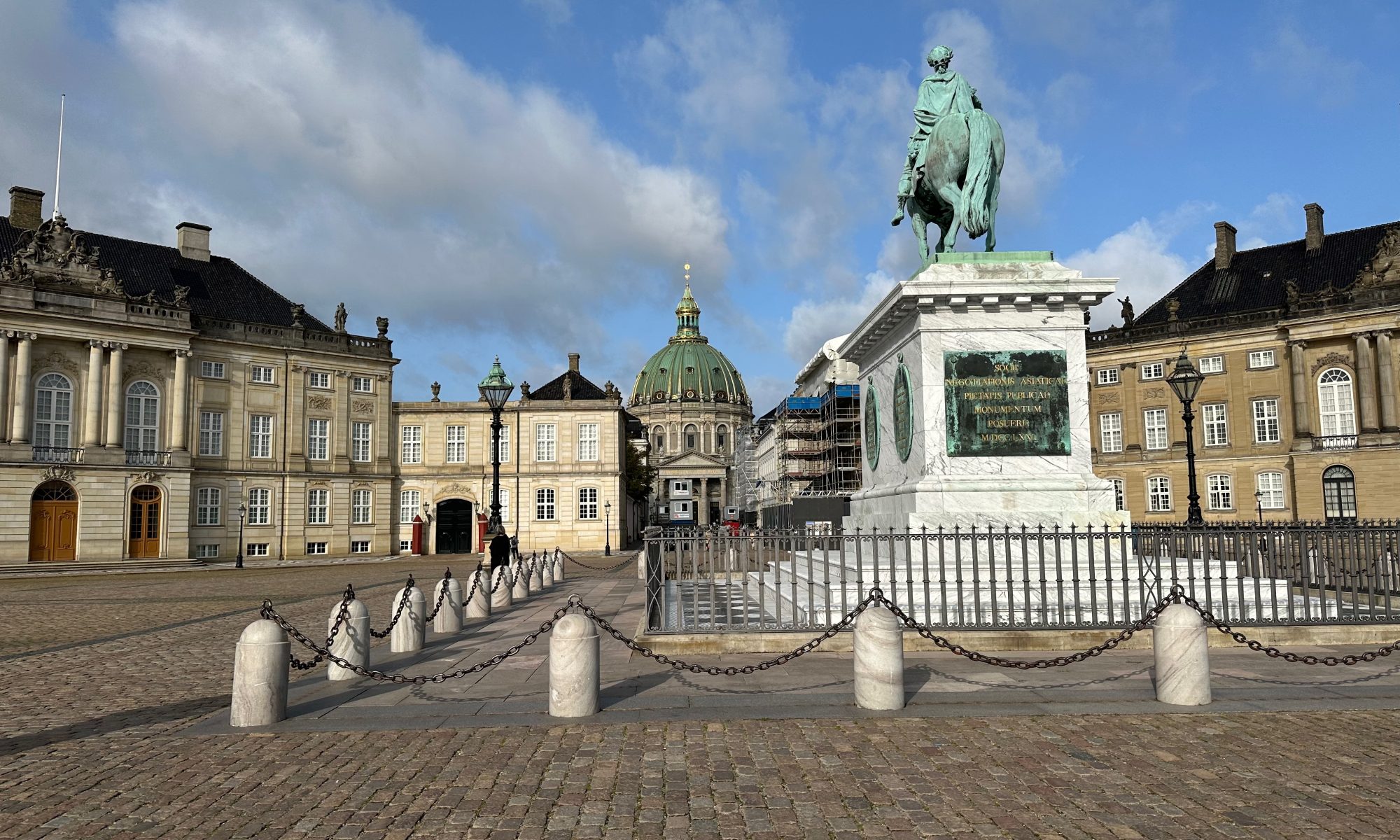 Amalienborg is the Queen’s winter residence. The Amalienborg complex consists of four palaces, built around an octagonal courtyard, in the centre of which stands the French sculptor J.F.J. Saly’s equestrian statue of Frederik V, the founder of Amalienborg and Frederiksstaden.