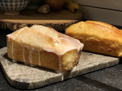 Requires 5-6 lemons. Preheat oven to 350 degrees F. Grease and flour 2 (8 1/2 x 4 1/4 x 2 1/2-inch) loaf pans, lining the bottom with parchment paper, if desired. Cream, using paddle attachment, butter and 2 cups granulated sugar in bowl of electric mixer until light and fluffy, approximately 5 minutes. With mixer on medium speed, add eggs, 1 at a time, and the lemon zest. Sift together flour, baking power, baking soda, and salt into bowl. In another bowl, combine 1/4 cup lemon juice, buttermilk, and vanilla. Alternately add flour and buttermilk to batter, beginning and ending with flour mixture. Divide batter evenly between pans, smoothing the tops. Bake 45 minutes - 1 hour, until tester comes out clean. When cakes are done, cool 10 minutes. Meanwhile combine 1/2 cup granulated sugar and 1/2 cup lemon juice in small saucepan, cooking over low heat until sugar dissolves. Remove cakes from pan and set on wire rack over jelly pan (best to set upside down on rack so that syrup is spooned onto the bottom of the cake as it will adsorb better than spooning over the top). Spoon lemon syrup over cakes, then allow cakes to cool completely. Glaze: Combine 2 cups sugar and 3 1/2 tablespoons fresh lemon juice in a bowl, mixing with whisk until smooth. Pour over the tops of the cakes and allow to drizzle down the sides.