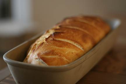 Press menu button on bread machine until 2 (French Bread) appears in the display window. Select 2 pound loaf. Heat water in microwave for 1.5 minutes. Combine water, salt, sugar, oil, flour, and yeast. Start the cycle and remove dough after final punch (100 minutes). Flatten on cookie sheet by hand or with a roller, and fold 1/3 from the bottom and 1/3 from the top. Pinch ends together. Repeat once. Cook in the oven at 450 for 17 minutes. For smaller loaves, divide the dough in two.